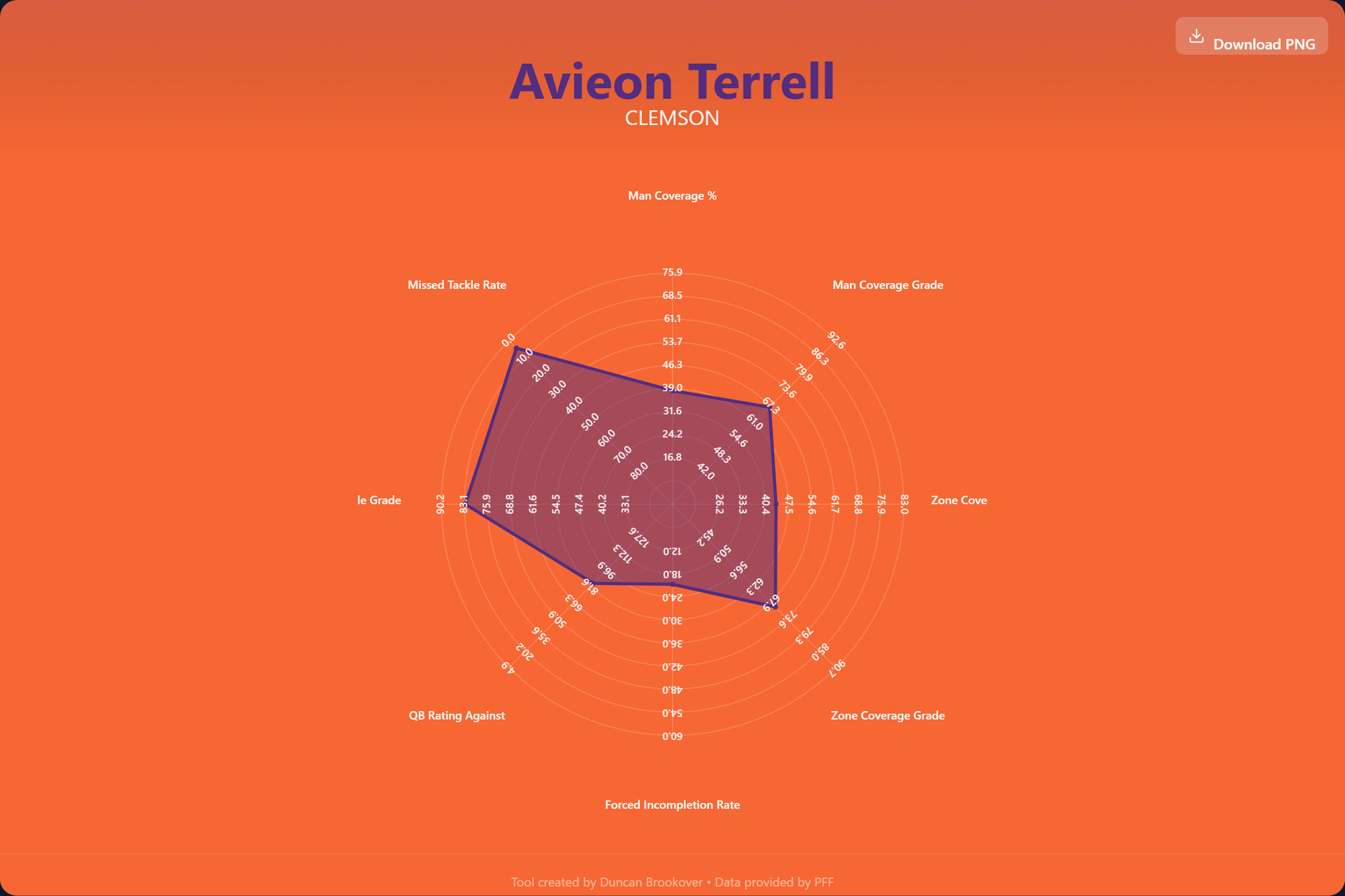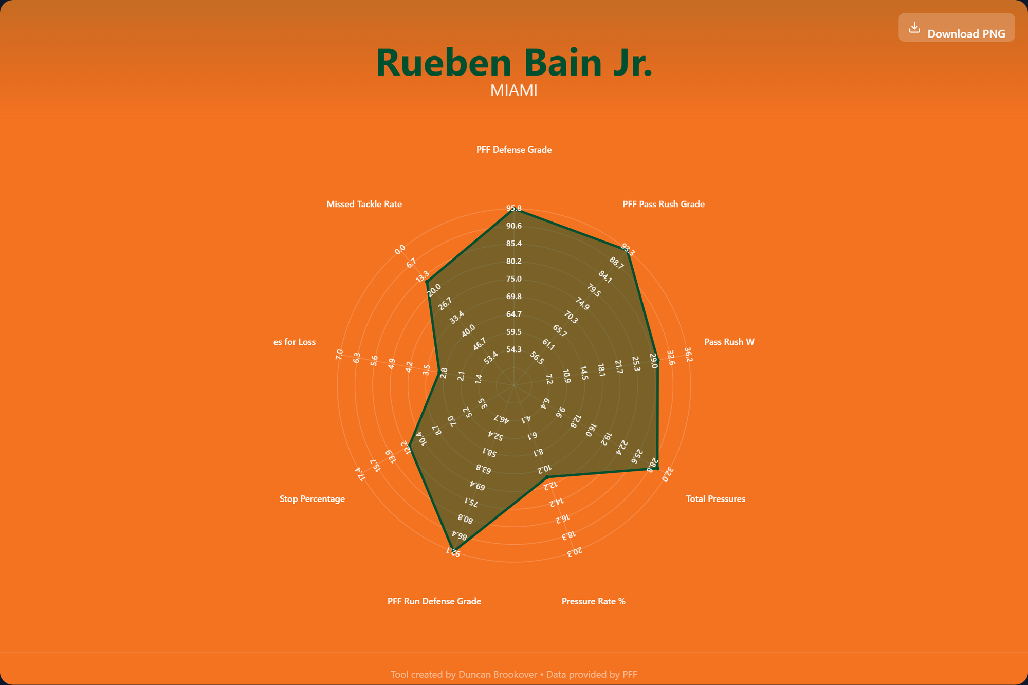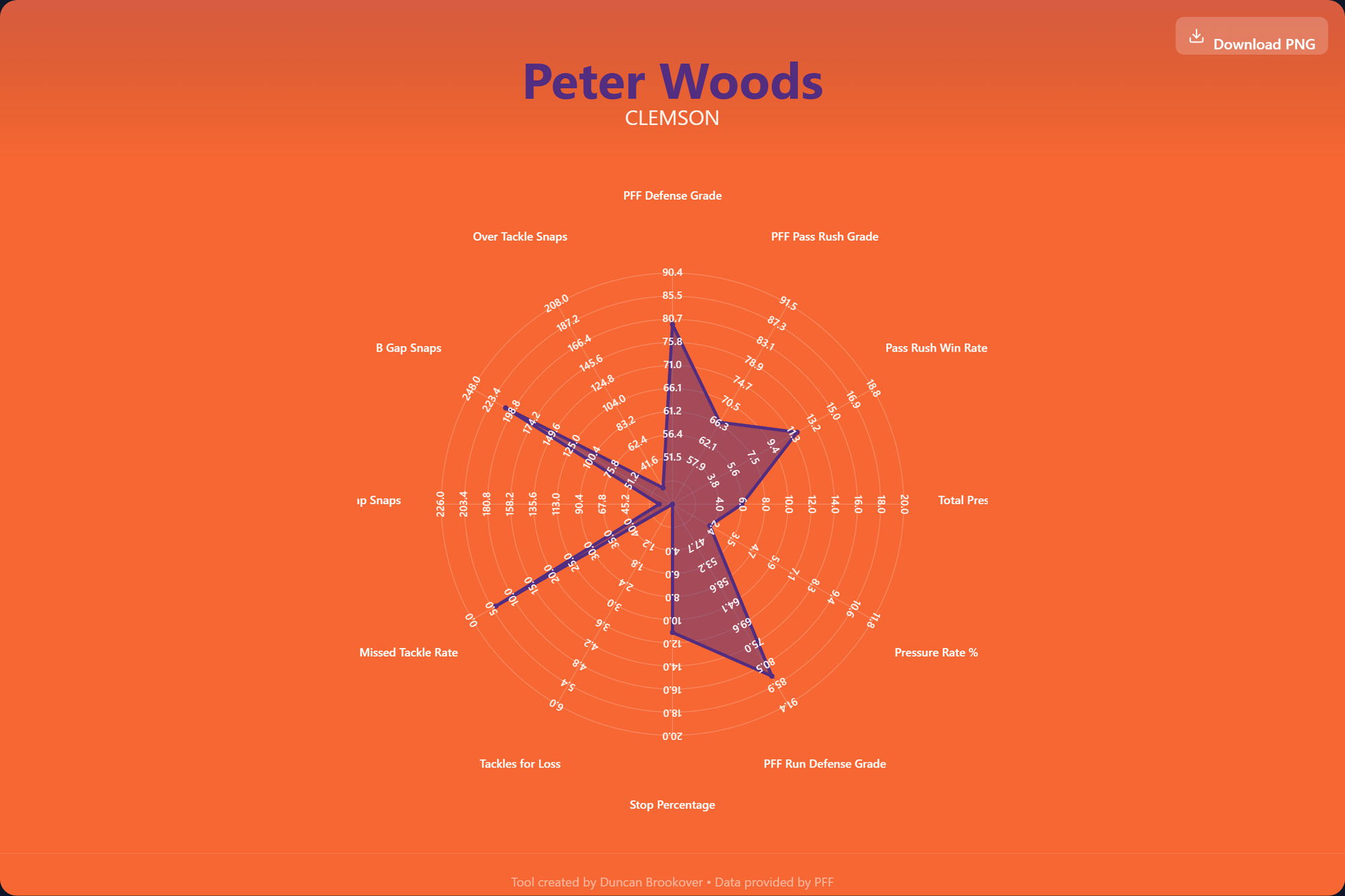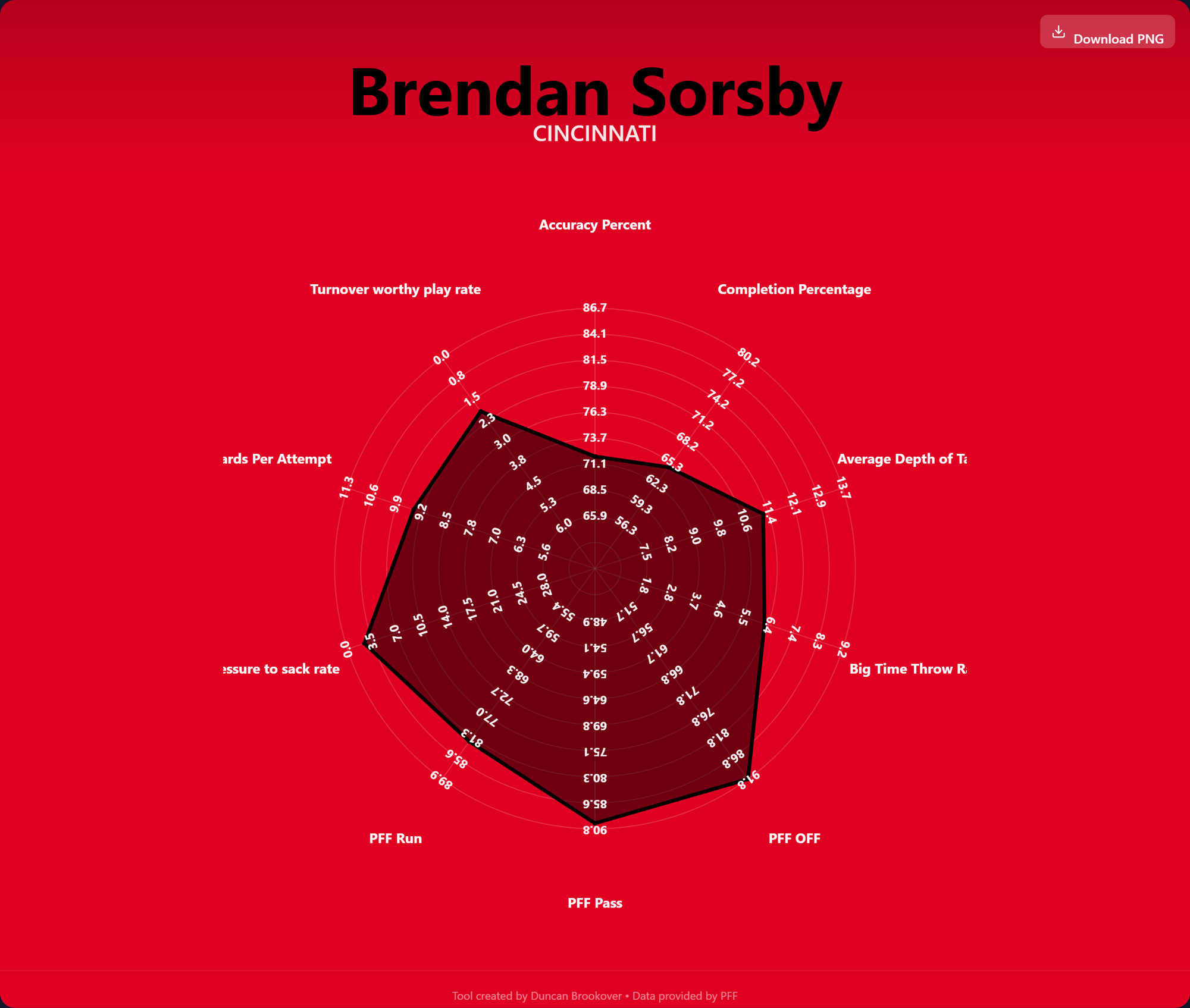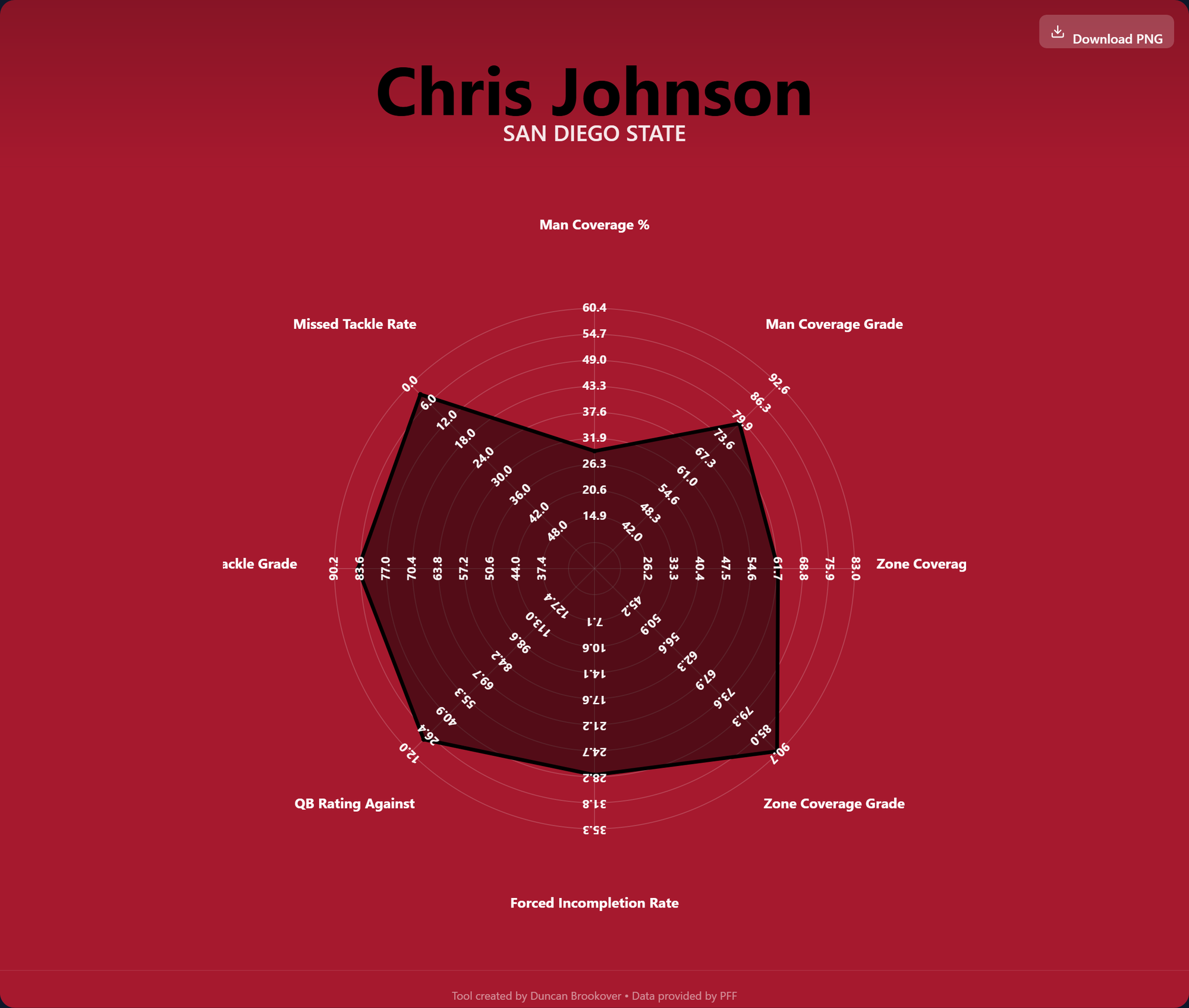 I have been waiting for this moment for a while, where it seems like two things are finally coming together. 1.) We finally have enough games under our belt to begin to draw data driven conclusions on how some prospects look this year. 2.) I have built a tool that makes the process of making radar charts quicker, and more accessible to all! You do need access to PFF premium data for it to work properly, so if you do feel free to check it out.