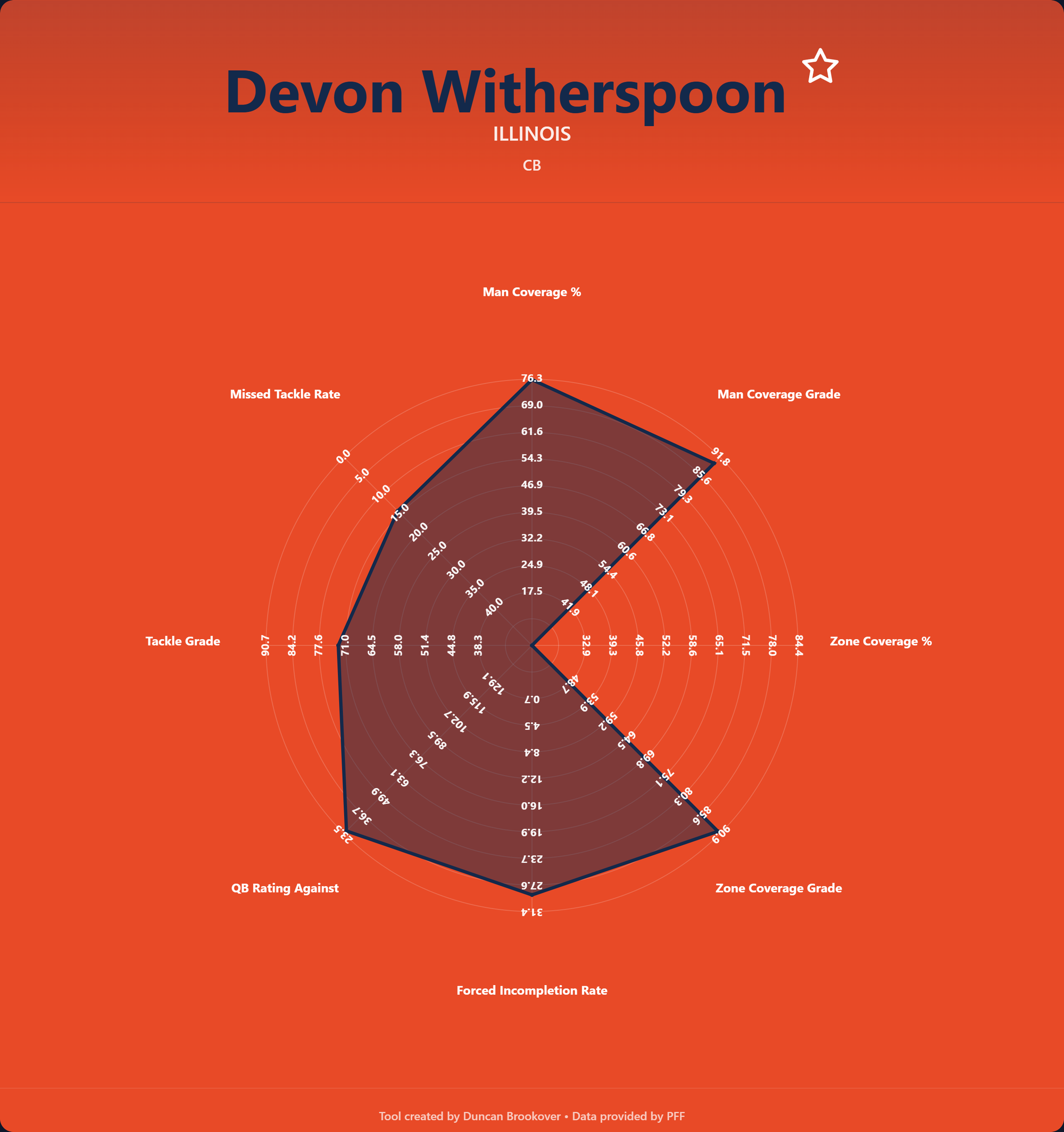 - Zone Coverage Grade – A proprietary PFF rating evaluating a cornerback's effectiveness in zone coverage — pattern matching, driving on routes into their zone, and maintaining awareness of multiple receivers.