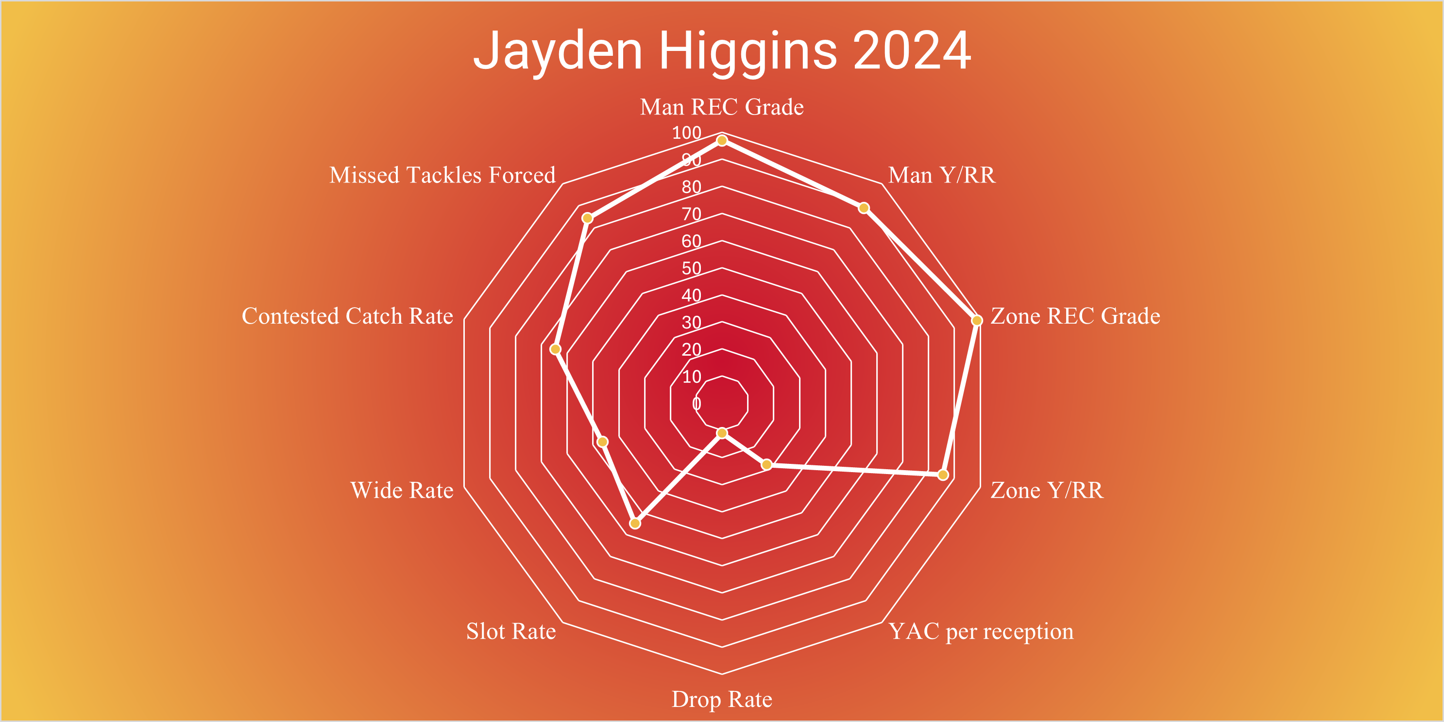 Man REC Grade: PFF Grading system for eligible receivers when facing man coverage